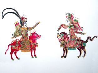 Lo spettacolo d'ombre in Cina era già in voga durante la dinastia Tang (618-907) e si diffuse rapidamente nei secoli a seguire tanto da essere perfino ammesso a corte in alcuni periodi. Le sagome sono realizzate all’inizio in carta e, in seguito, in pelle di pecora, d’asino o di bue a seconda delle tradizioni (piying皮影, ombre di pelle). La pelle è messa a bagno per un'intera giornata, poi tesa su una tavoletta e quindi intagliata. La figura ottenuta viene dipinta e trattata con olio vegetale affinché i colori si fissino e siano visibili anche sullo schermo (yingchuan, finestra delle ombre). La figura è solitamente costituita da una testa rimovibile e da arti mobili connessi al corpo. Le silhouette rappresentano personaggi maschili sheng, femminili dan, “visi dipinti” jing e buffoni chou, oltre ad animali e ambientazioni di scena.